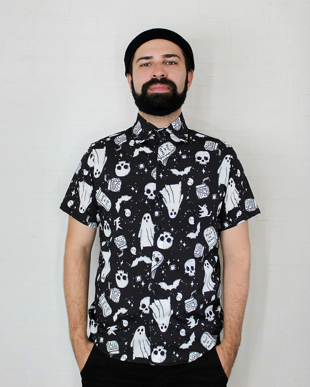 Preparado para incorporar um toque de mistério e estilo sombrio ao seu visual? Apresentamos a camisa de botão social Dark Nightmare, uma peça única que vai além do convencional, trazendo um toque de ousadia e dark ao seu guarda-roupa.