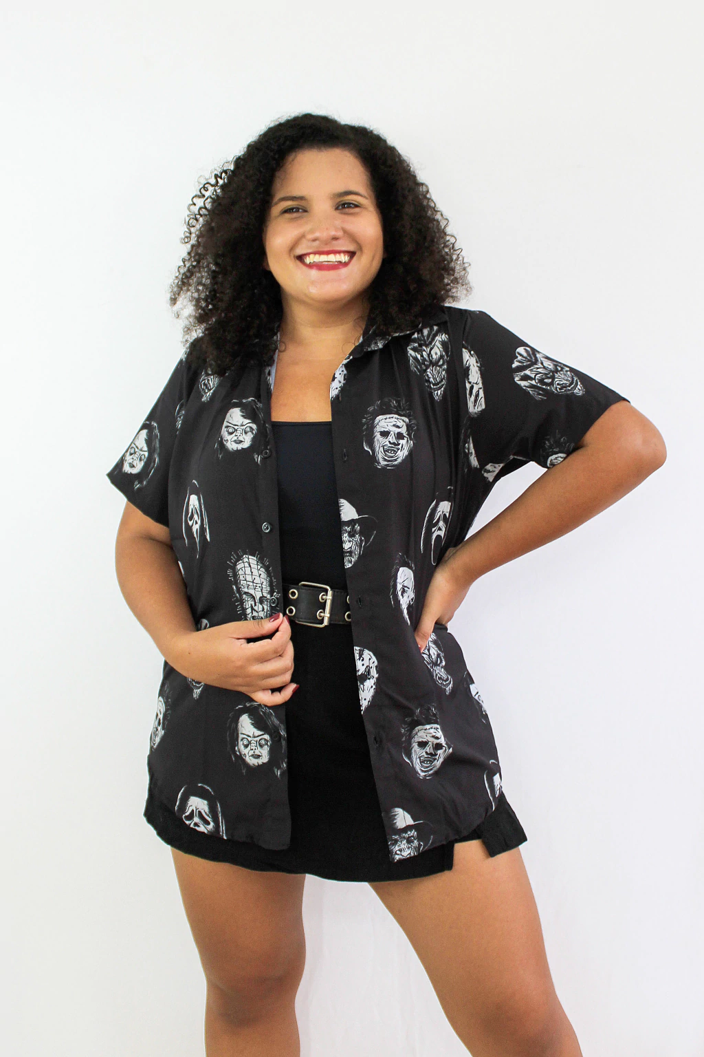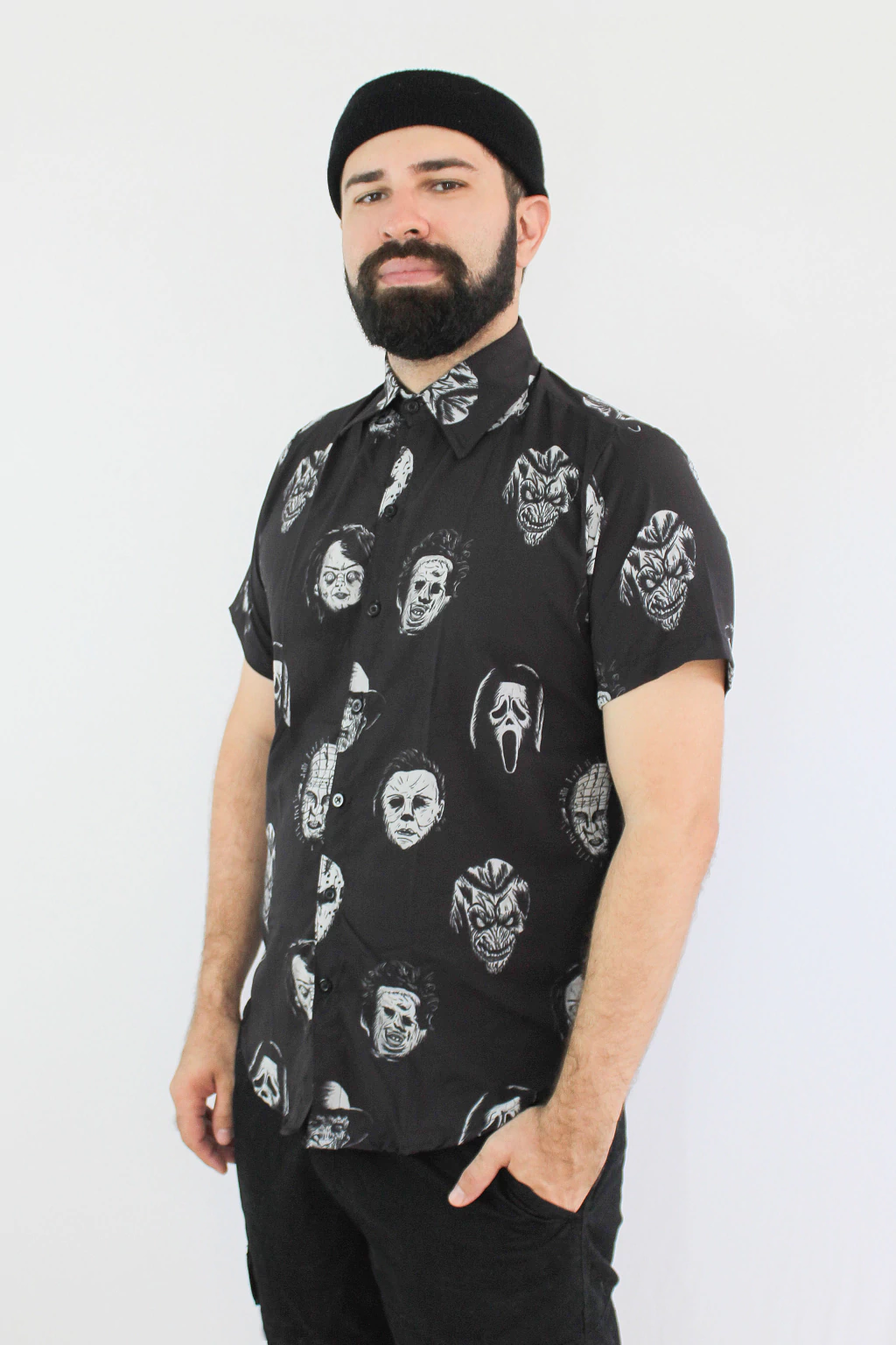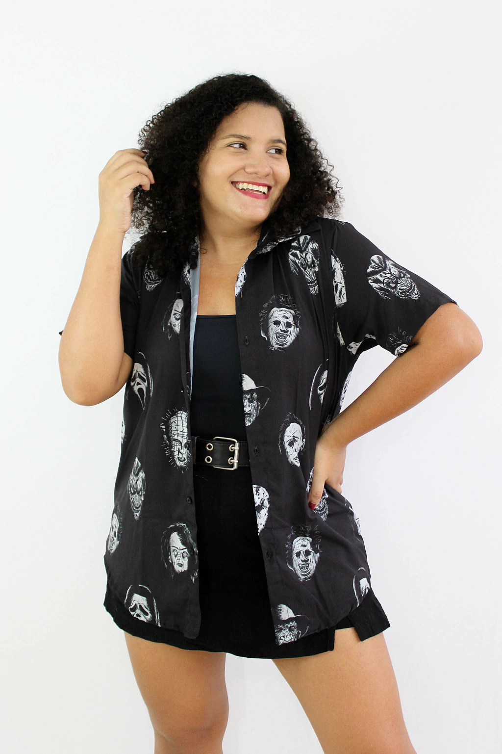 Se você é apaixonado pelo universo do horror e quer expressar isso com autenticidade, esta camisa de botão estampada é a peça perfeita para o seu guarda-roupa! Inspirada nos monstros clássicos do terror dos anos 80, ela traz uma estampa exclusiva que une nostalgia e estilo, garantindo um visual impactante e cheio de personalidade.