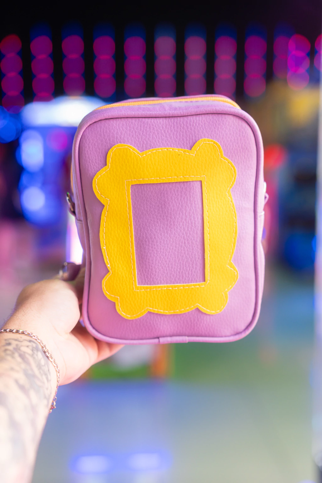 A Shoulder Bag Transversal Friends é a escolha perfeita para quem ama unir praticidade e referências icônicas. Produzida em corino roxo de alta qualidade, ela traz na frente a charmosa moldura amarela, um detalhe que transforma a bolsa em muito mais do que um acessório: é uma declaração de amor à cultura pop.